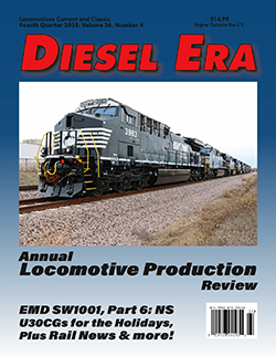 FOURTH QUARTER 2025: Sean Graham-White delivers Diesel Era’ annual roundup of locomotive production in the latest edition of Diesel Era. Norfolk Southern and Conrail SW1001s are featured in the continuing series on this EMD switcher, and Santa Fe U30CGs arrive for the holidays. All this and more in the 4th Quarter 2025 issue of Diesel Era!